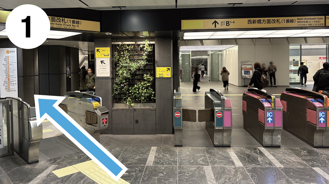 西新橋方面改札を出て左に進みます。