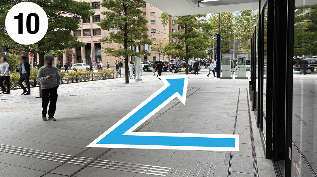出口を出て、右に曲がります。
