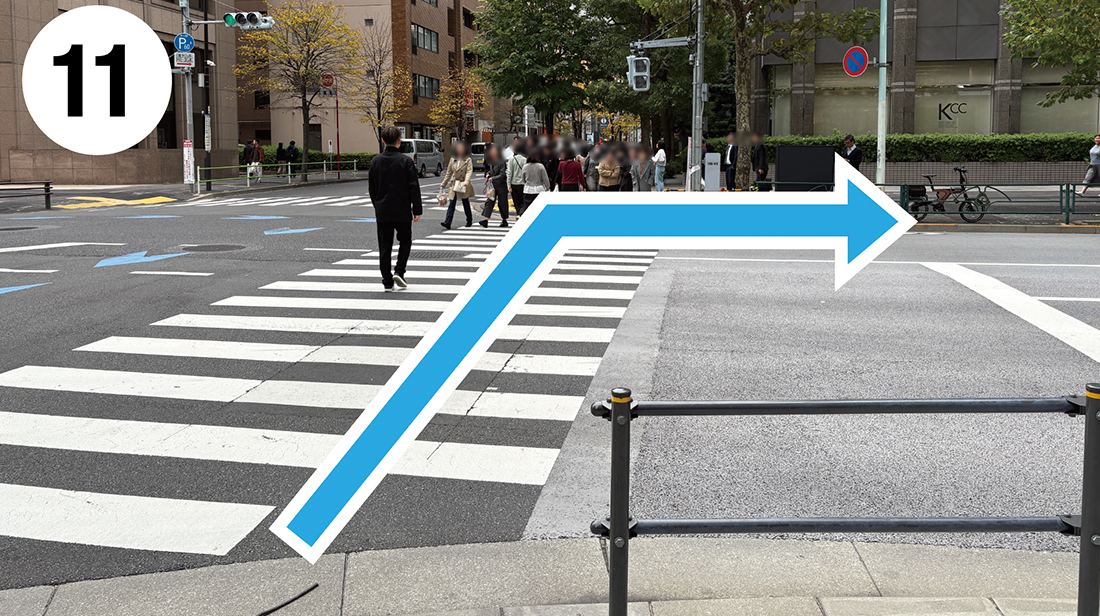 横断後、右に曲がります。