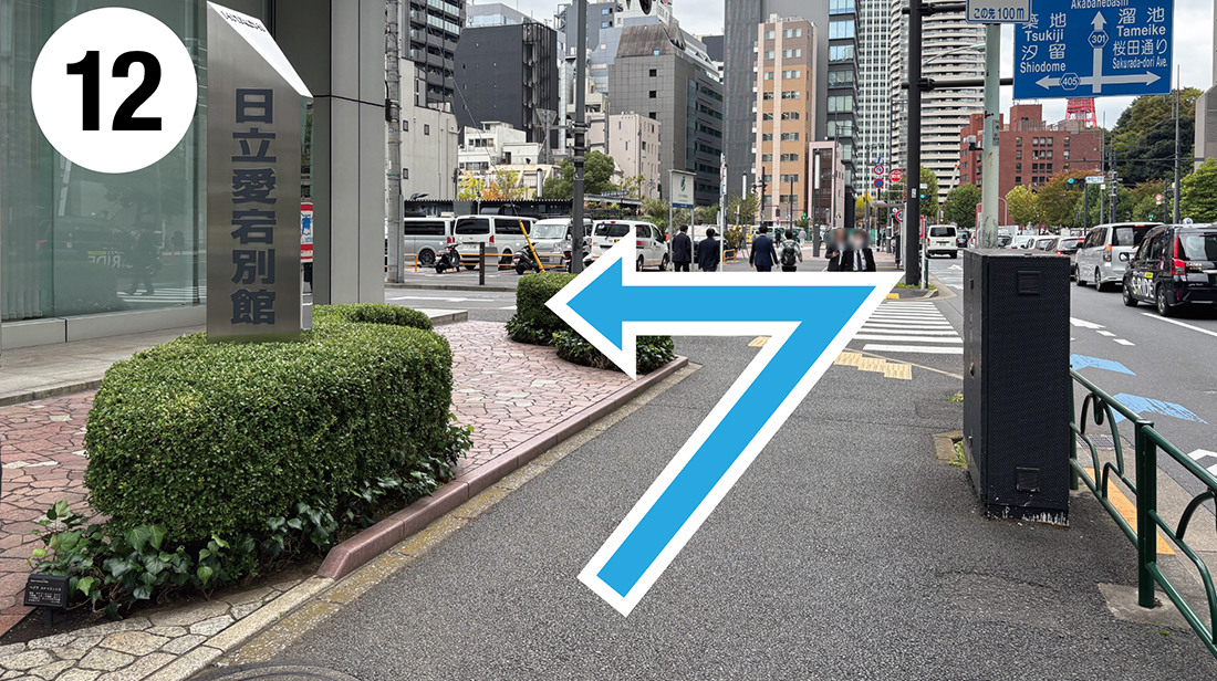 直進すると、「日立愛宕別館」がありますので、そちらを左に曲がります。