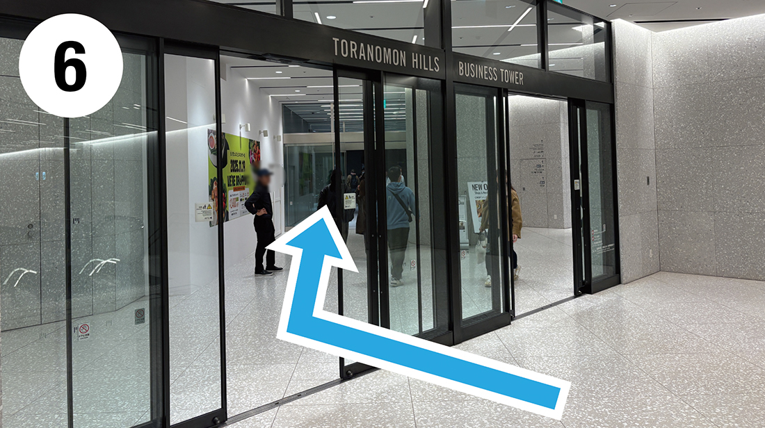 エスカレーターを降り、虎ノ門ヒルズビジネスタワー入口に入り直進します。