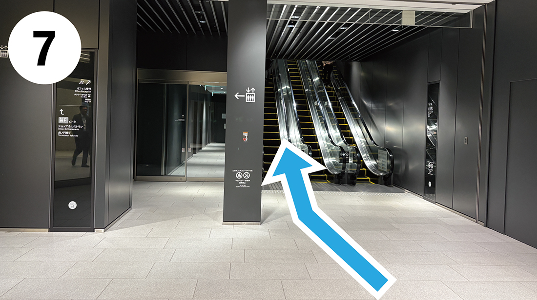 エスカレーターにて上へ進んでください。
