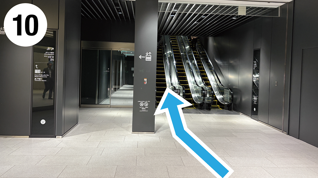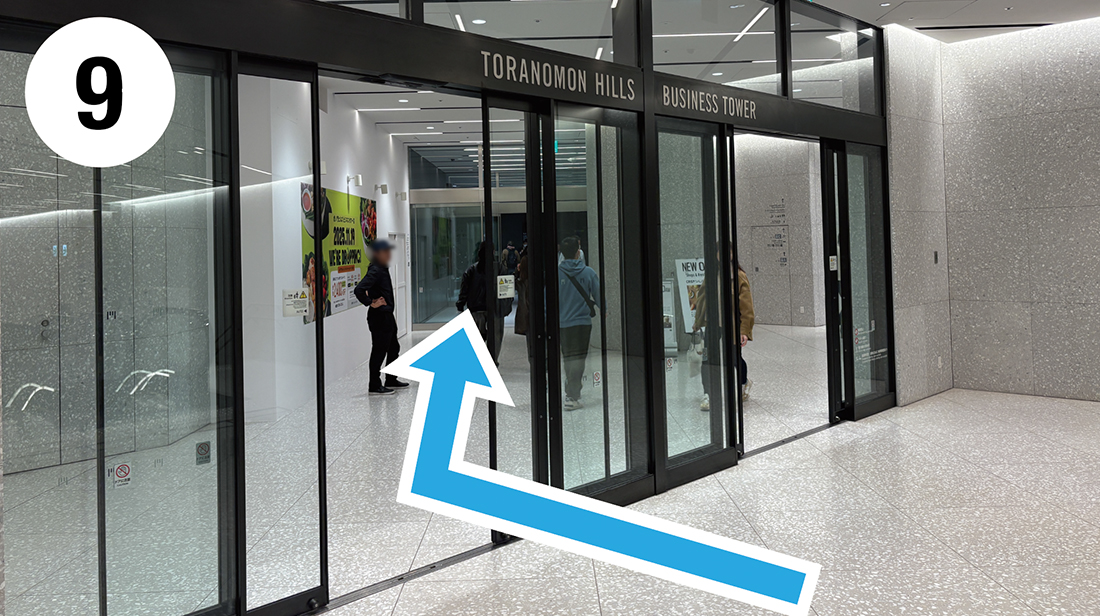 エスカレーターを降り、虎ノ門ヒルズビジネスタワー入口に入り直進します。