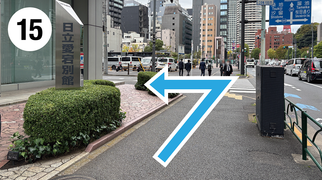 直進すると、「日立愛宕別館」がありますので、そちらを左に曲がります。